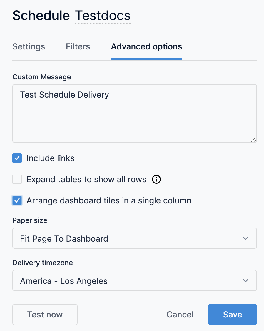 A Dashboard lets you schedule immediate or recurring delivery of dashboards. This topic describes how to schedule and share dashboards.